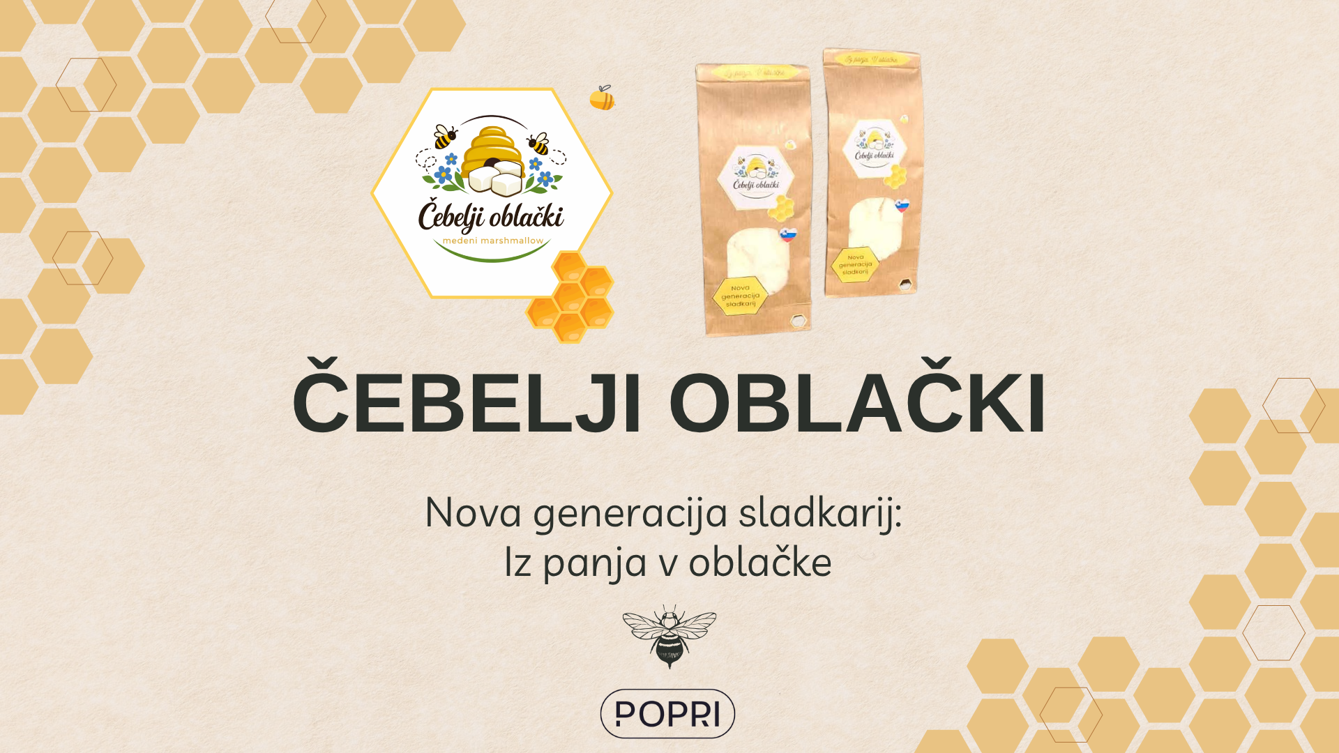 Čebelji oblački so nova generacija sladkarij: marshmallows brez rafiniranega sladkorja, ki združujejo dolgo tradicijo slovenskega čebelarstva, hkrati pa sledijo sodobnim prehranskim trendom. Vir sladkosti je v produktu izključno med - surovina z dolgo tradicijo v Sloveniji in s številnimi dobrinimi učinki za našo zdravje. Želim ustvariti moderno, mehko sladkarijo s “čisto” sestavo, ki je primerna za ljudi, ki se izogibajo rafiniranemu sladkorju, hkrati pa cenijo lokalno poreklo in trajnost. Z uporabo medu podpiram lokalne čebelarje, kratke dobavne verige ter odgovorno potrošnjo. Izdelek je na voljo v več okusih (npr. klasičen medeni, kakav, pomaračni in božični), v okolju prijazni embalaži, primerni tudi za darila. Čebelji oblački so novost na slovenskem trgu, vendar imajo velik potencial, saj ponujajo sladek užitek brez slabe vesti ter združujejo okus s pozitivnimi lastnostmi medu.