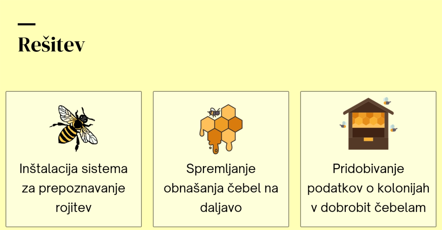 BeeSmart je napreden, modularen sistem za pametno spremljanje čebeljih panjev. Omogoča stalno merjenje ključnih podatkov, kot so temperatura, vlaga, zvok in drugi parametri v panju, brez fizičnega poseganja v življenje čebel. Podatki se v realnem času prenašajo v aplikacijo, kjer ima čebelar vpogled v stanje panja kadarkoli in kjerkoli. Sistem je cenovno dostopen, prilagojen lokalnim razmeram ter zasnovan tako, da povečuje varnost čebel in učinkovitost čebelarjenja.