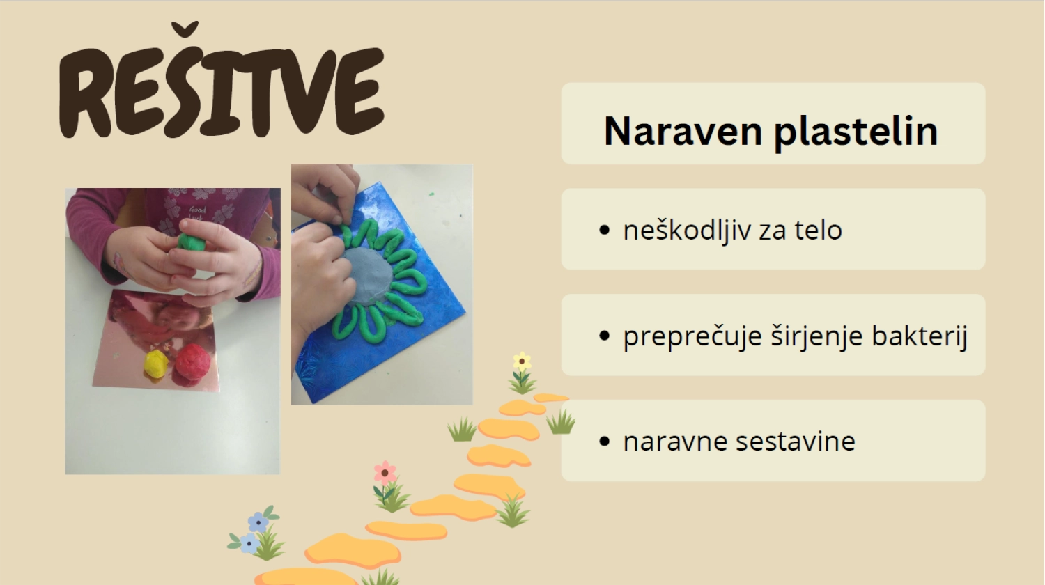 Čebelji gnetko je plastelin, ki je izdelan iz čebeljega voska, ki ga pridobivamo od lastnih čebel, smrekove smole, naravnih olj in naravnih barvil. Je mehak, prijetno dišeč, neguje kožo in preprečuje širjenje bakterij. Naš plastelin deluje tako, da se zaradi toplote rok zmehča in ga je lažje oblikovati. Ko se ohladi, postane nekoliko trši in ohrani obliko.